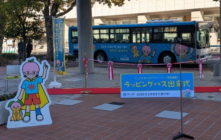 「こどもまんなかマナーアップ県民運動」に岡電のラッピングバスが登場!