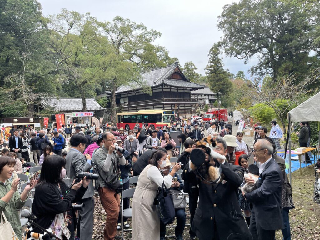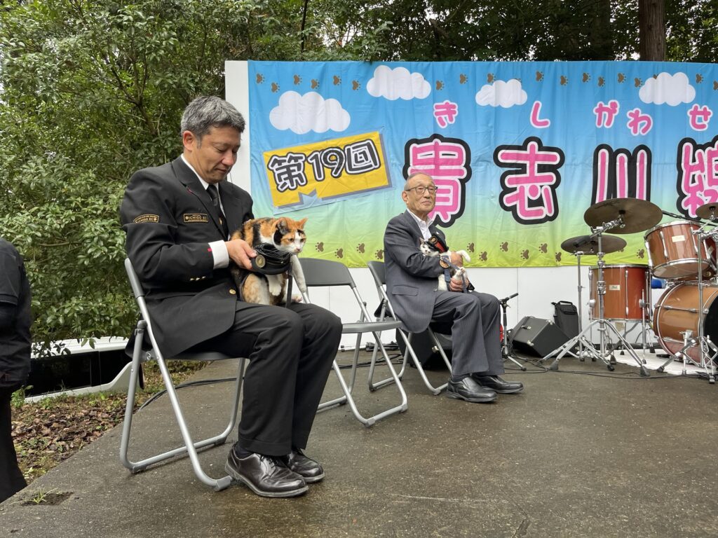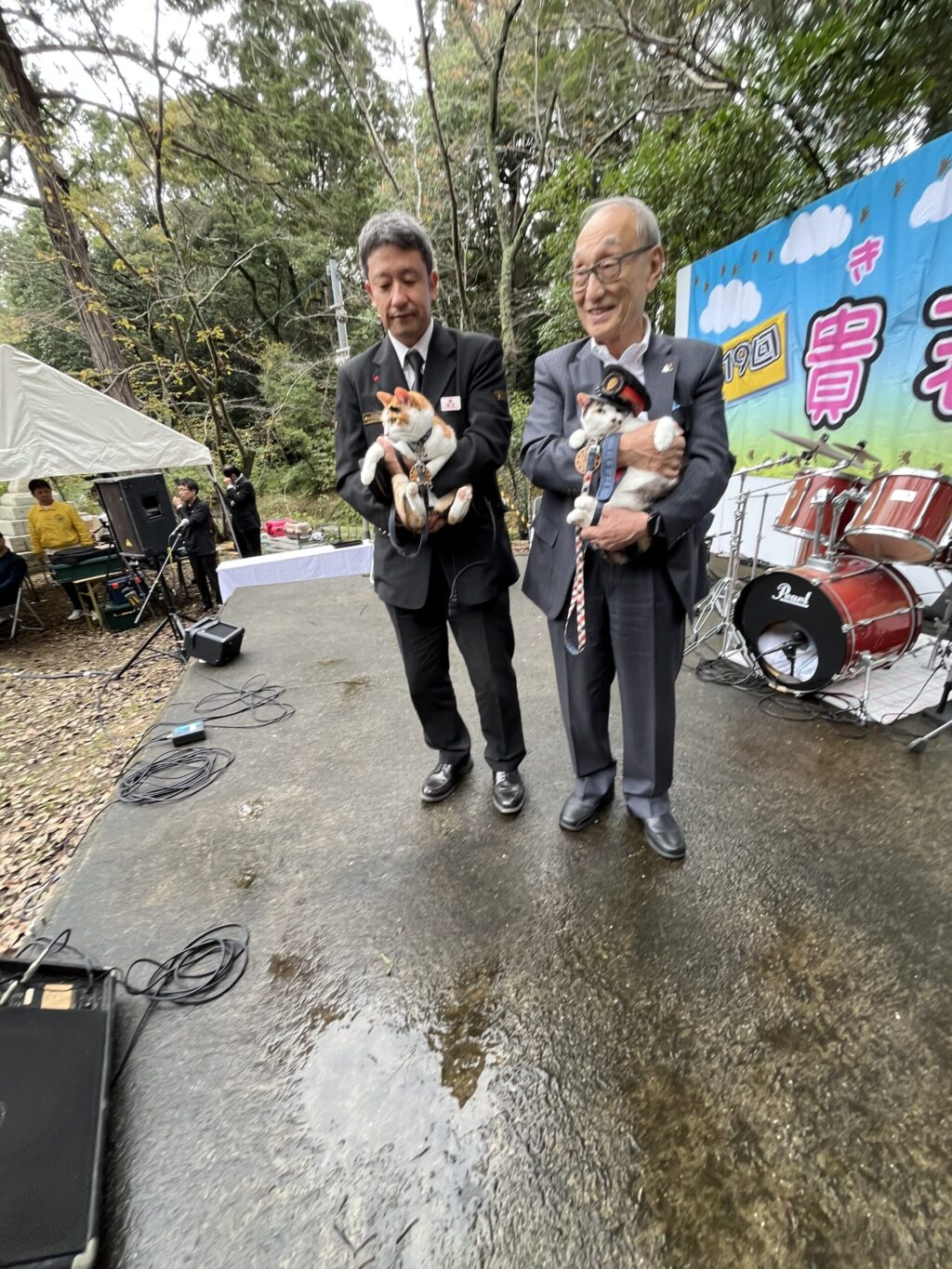 「ニタマ駅長」が高齢のため駅長業務を11月2日(日)から休養に入るため、「よんたま駅長」と「ごたまふく駅長」が出張で代理出席して、ニャーニャーと楽しい雰囲気でご機嫌で頑張っていました。