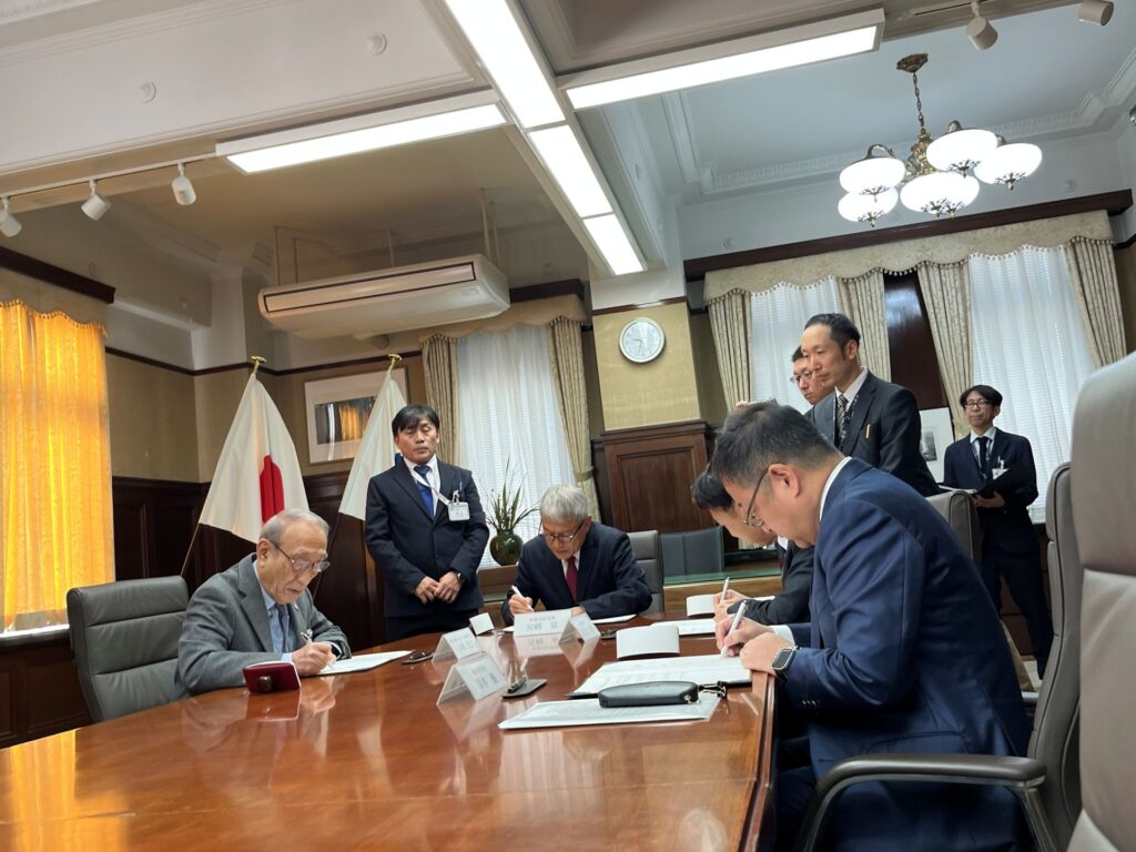 ニタマ駅長も11月20日に天寿を全うし、待ちに待ったこの調印式が決まったことを“たま大明神”に報告に旅立ちました。今日の合意書の署名はニタマ駅長のボールペンで皆さん揃ってサインをさせていただきました。ニタマ駅長の功績に報いる供養になったと思います。