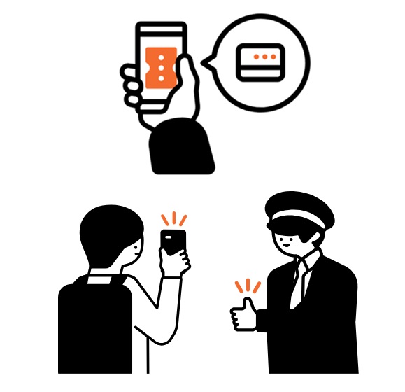 乗車時または降車時(※)に乗務員に「チケット画面」を提示します。