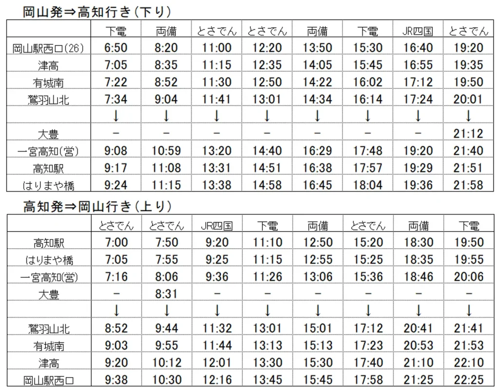 ※ジェイアール四国バス株式会社、下津井電鉄株式会社、とさでん交通株式会社と共同運行
