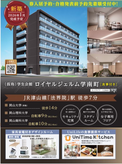 なお、「風の野」を構成する学生マンション「ロイヤルジェルム学南町」については、現在入居者予約受付中です。