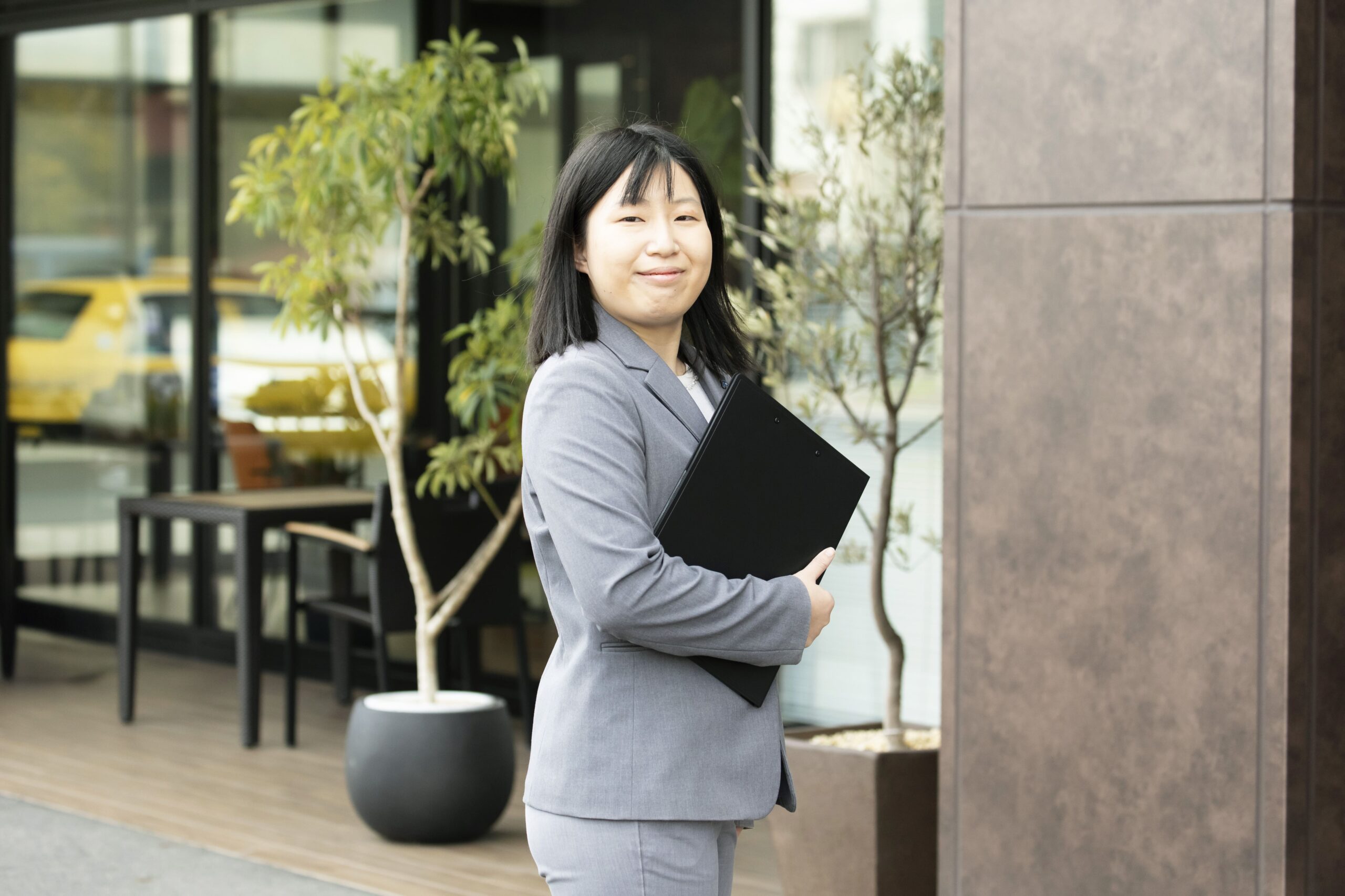 元々観光業に興味を持っていましたが、コロナ禍の影響で観光業の新卒採用が中止されたため、他業界でのインターンシップ経験を通じて、普段あまり利用しない乗り物の裏側に興味を持つようになりました。タクシーは、観光客や地元の人々にとって欠かせない移動手段であり、多様な体験が広がる魅力的な業界だと感じました。普段見えない部分を知り、実際にその魅力を実感したいと思い、タクシー業界に飛び込むことを決めました。特に岡山交通には、岡山の魅力を伝える「ランチプラン」や「ぶらり旅」という商品があり、私自身もこの仕事に携わってみたいと思ったことが入社を決めた理由です。この経験を通じて、観光業における移動の重要性を再認識し、「快適な移動」を提供できる存在として成長し、多くの人々に喜ばれるサービスを提供したいと考えています。