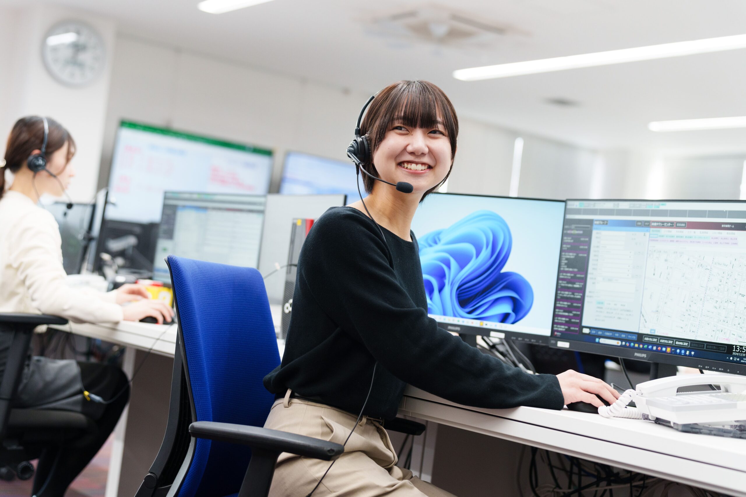 入社して感じたギャップの1つ目は、1日の電話本数です。多いと聞いていましたが、実際に仕事をしてみると、想定以上の電話注文の多さに驚きました。特に雨の日や猛暑日などは、電話が途切れることがありません。岡山交通のタクシーが多くのお客様に利用されていることを実感する一方で、1件ごとの対応にはスピードと正確性が求められる仕事だと改めて気づかされました。
