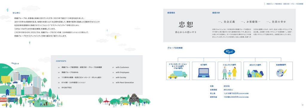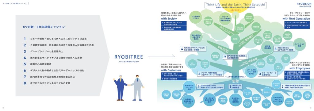 この「RYOBISION 2025」では、両備グループの「8つの新・3カ年経営ミッション」に照らして、両備グループのサスティナビリティの取組をご紹介いたします。
